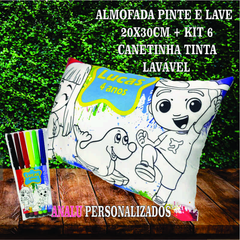 Almofadinha Personalizada Pinte e Lave + 1 Jogo de Canetinha 6 cores